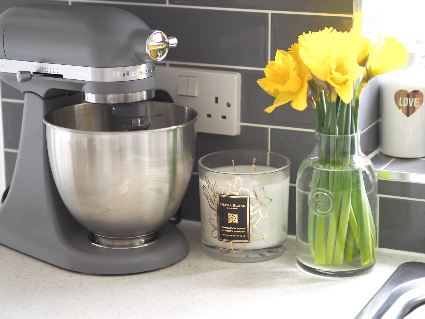 The kitchen is very much the same apart from a small addition of my dream grey Kitchen Aid. It goes perfectly with the grey tiles and white colour scheme of the room. As you will see in my full house tour update video on Youtube I’ve also added in more artwork in the kitchen.