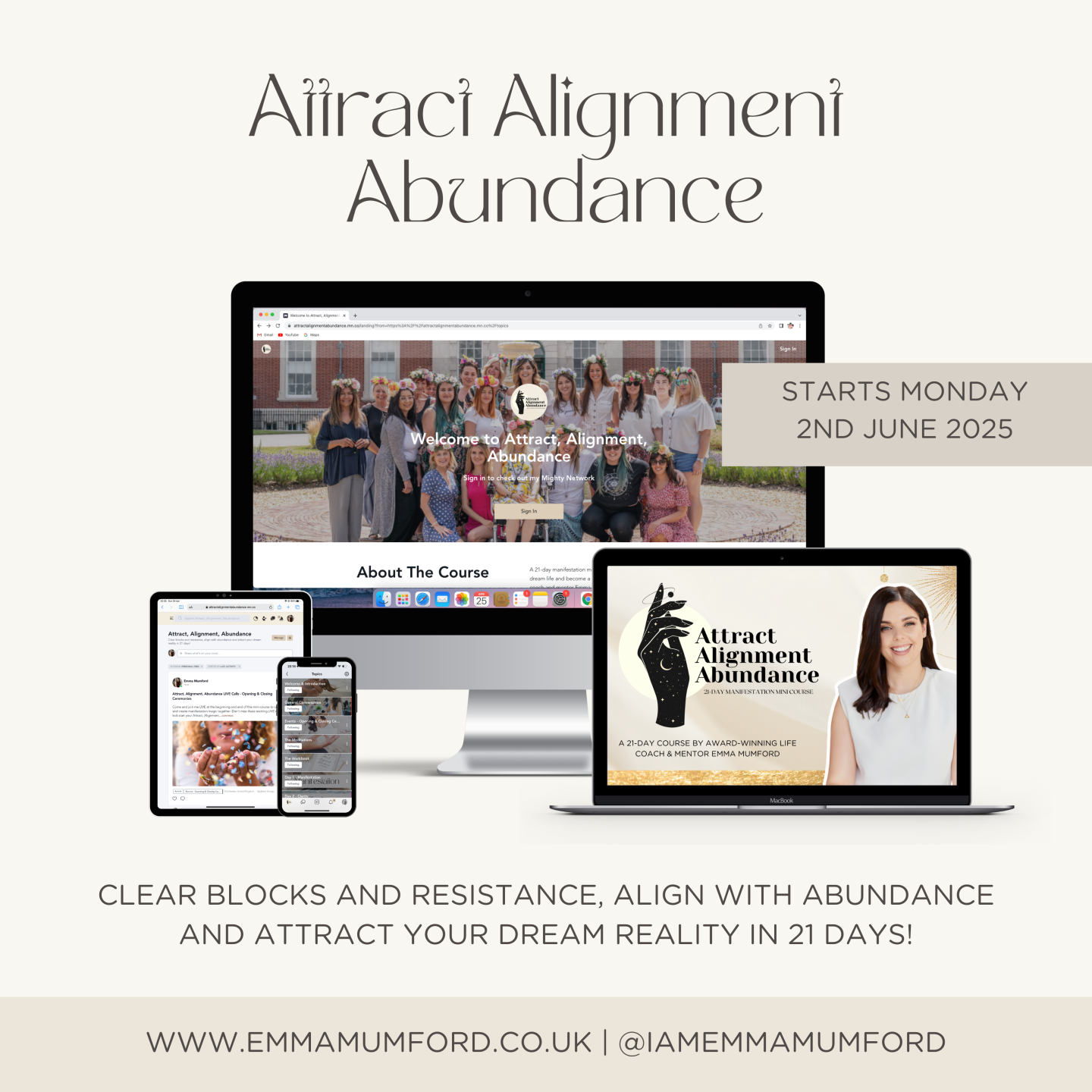 Attract, Alignment, Abundance is Emma's brand new signature manifestation course. Designed to help you unlock abundance, attract alignment and manifest your wildest dreams. This is Emma's first and only in-depth manifestation course designed to create HUGE shifts in your life straight away!