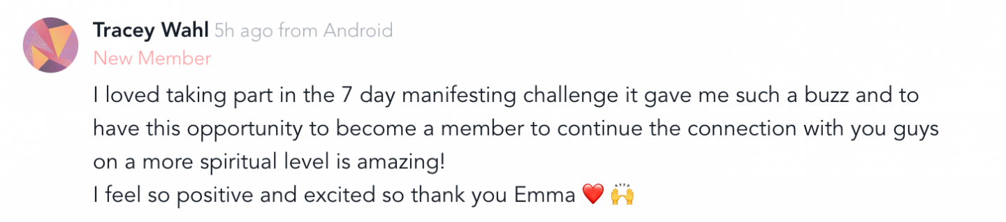 What makes Manifestation Membership unique is that you can also access ALL of the membership content, connect with fellow members with geo location services, direct message one another and access forum topics on the go via our very own app. So you have full control of where and when you access Emma’s membership!