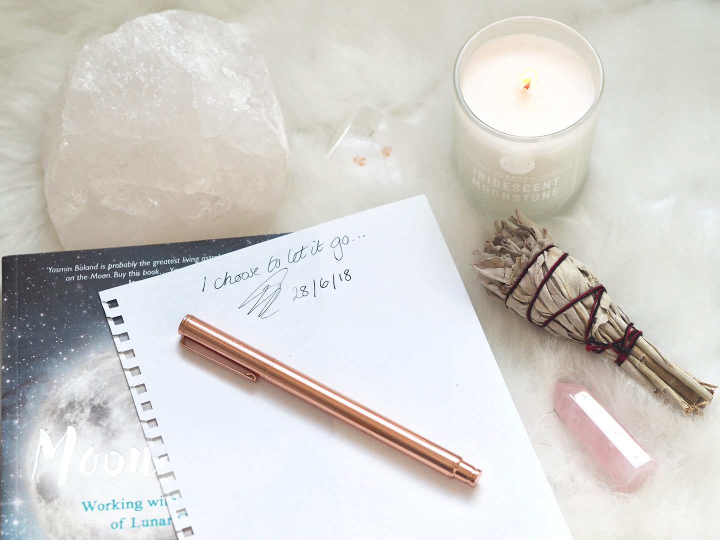 Next make a list of ALL the emotions, beliefs, people etc that you want to let go of. Start off by dating the paper, writing ‘I choose to let it go’ and once you’ve finished sign it. These can also include manifestations you want to bring into fruition. It’s safe to put these on as letting go is all part of the surrendering process. I always find when I do let them go in a full moon practice they happen so much faster.