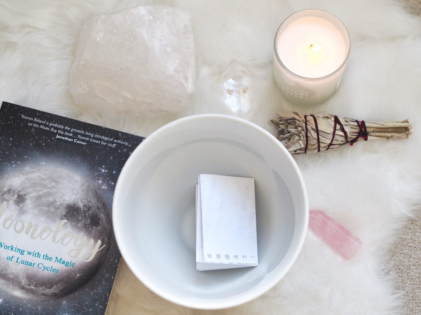 First of all, it’s important to be present, so center yourself and focus on your breathing. You can also set up an altar to accompany your full moon practice. I like to light some candles, and incense and do a sage of my house afterwards to clear any negative energy.