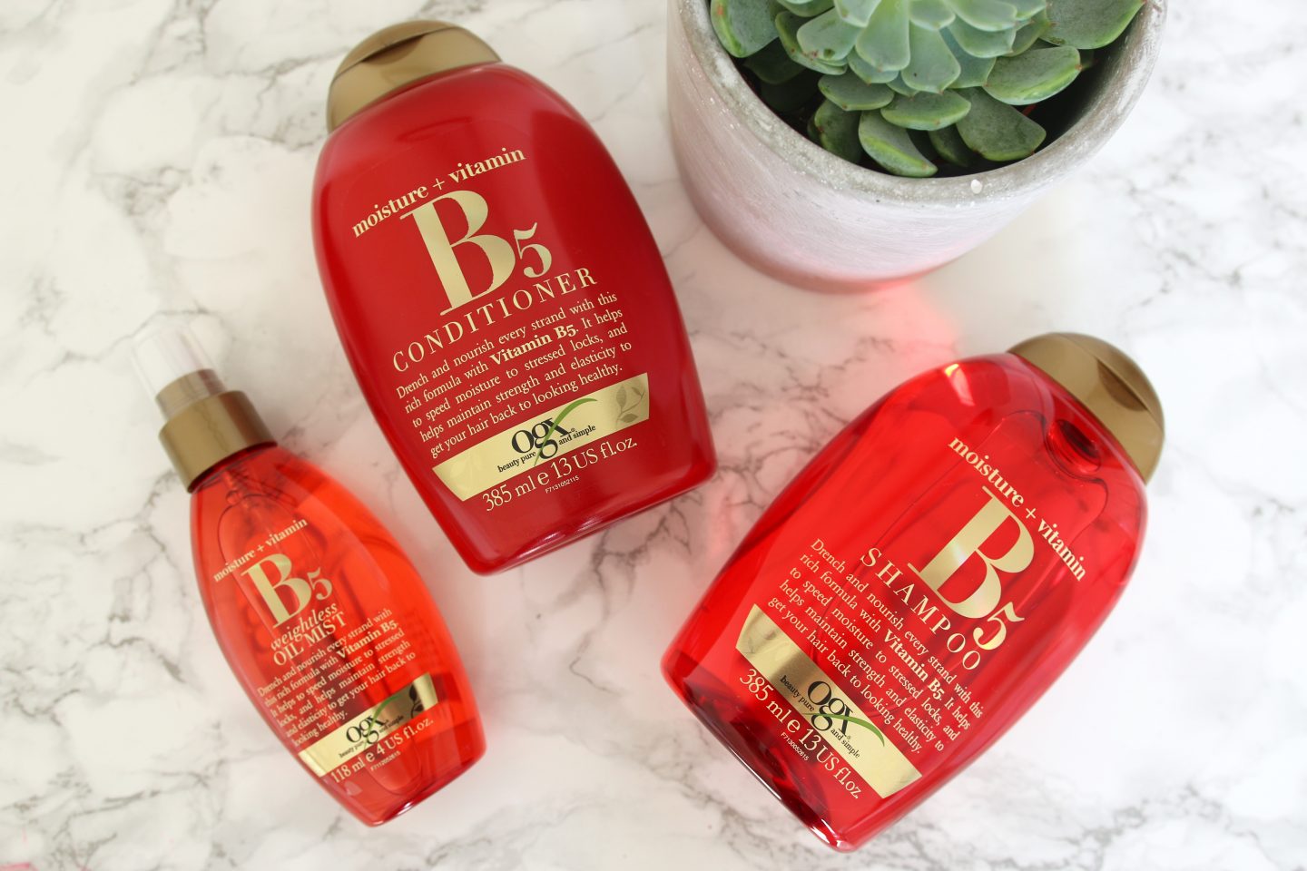 I was first introduced to the OGX range last year when I tried the Coconut Water range and fell in love. I couldn’t believe a high-street brand of hair care products could really make my damaged locks look as fabulous as they do today. Since trying the Coconut Water range I have also tried a few other variants OGX have to offer, so today I wanted to show you the latest addition to my hair care routine the B5 range!